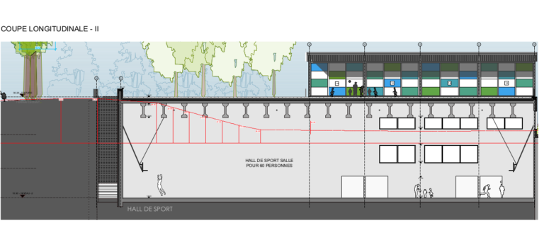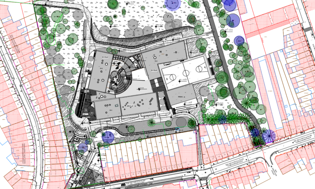 Le projet prévoit la construction sur le site d’une école fondamentale de 672 places (sans en démontrer la nécessité), une salle de sport (qui accueillera sur son toit une des cours de récréation) ainsi que 8 logements et un rez commercial (profession libérale) en lisière de site.